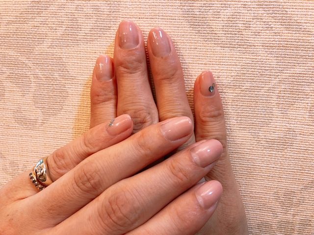 小指にだけ、さりげないストーンがきらっ!