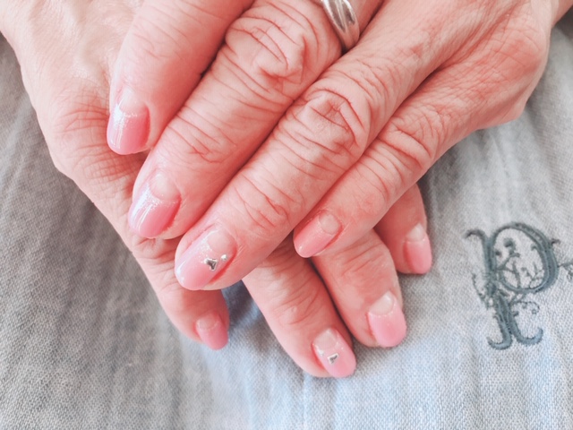 いつも可愛いらしいお客様。前回と同じ逆フレンチを少しラメを加えてアレンジしました。