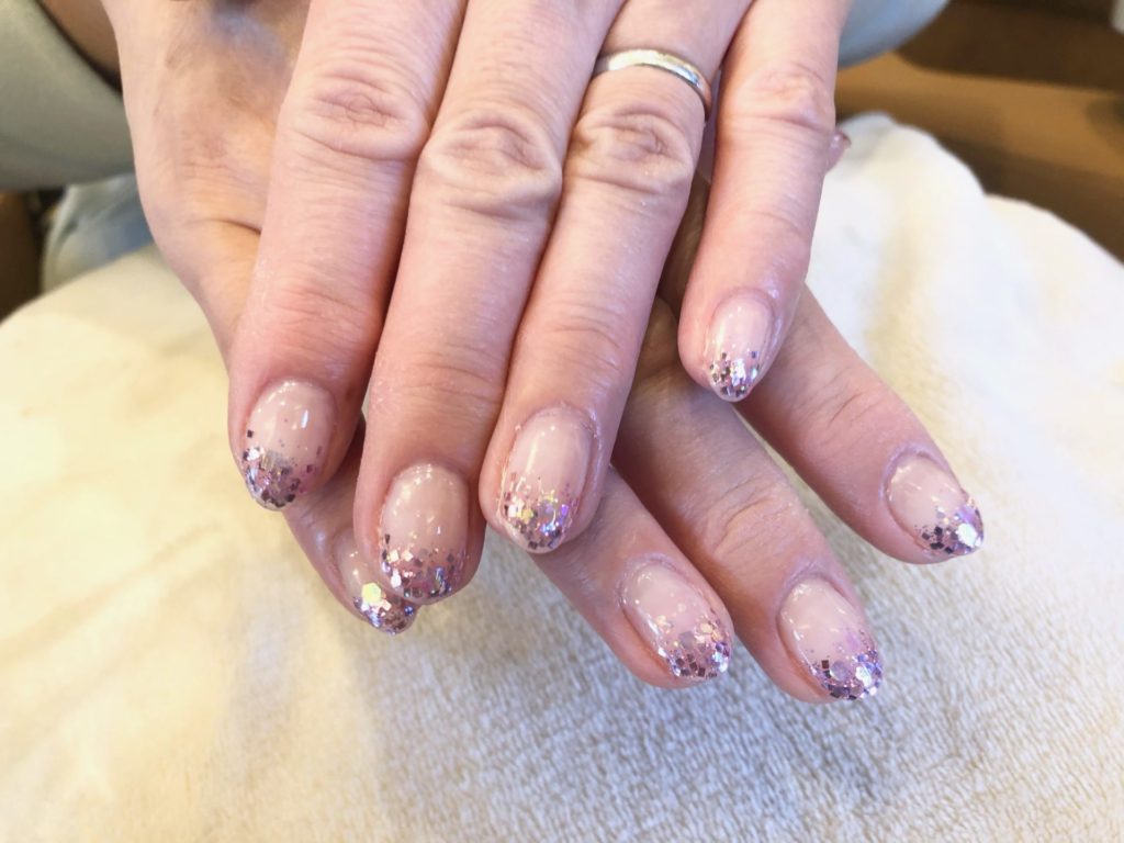 パープルのラメとオーロラホロのミックス!キラキラのお洒落感と、大切な強度を増す為こちらのデザインに。