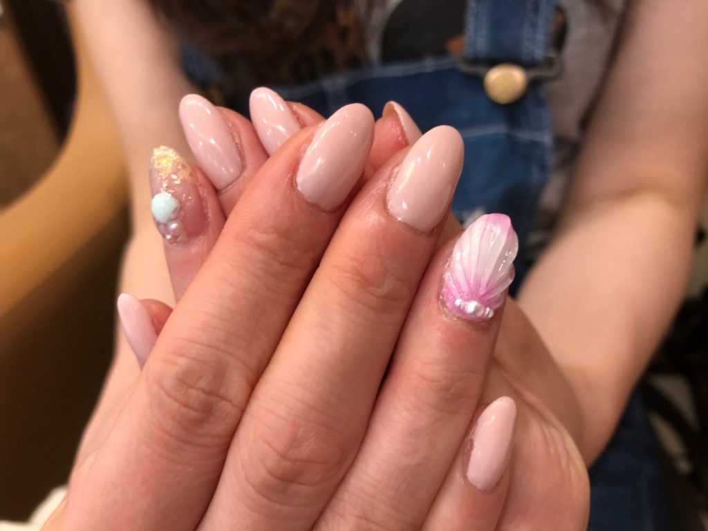 マーメイドネイルが、ポイントになっています。立体感が出て、楽しいネイルですね!