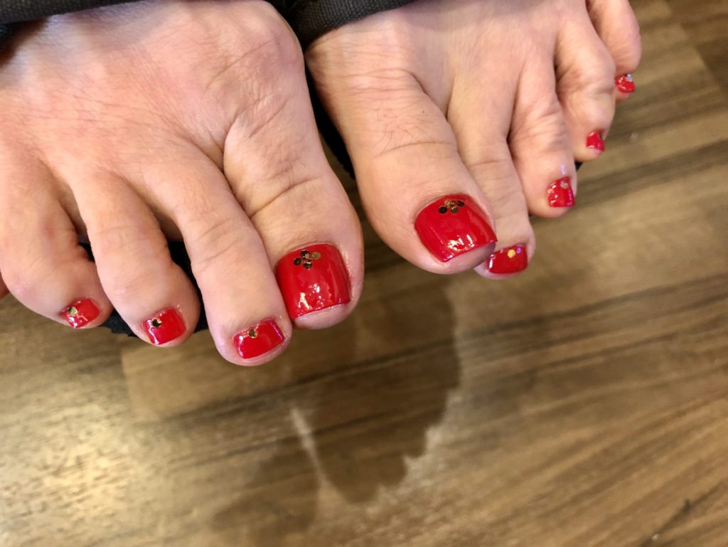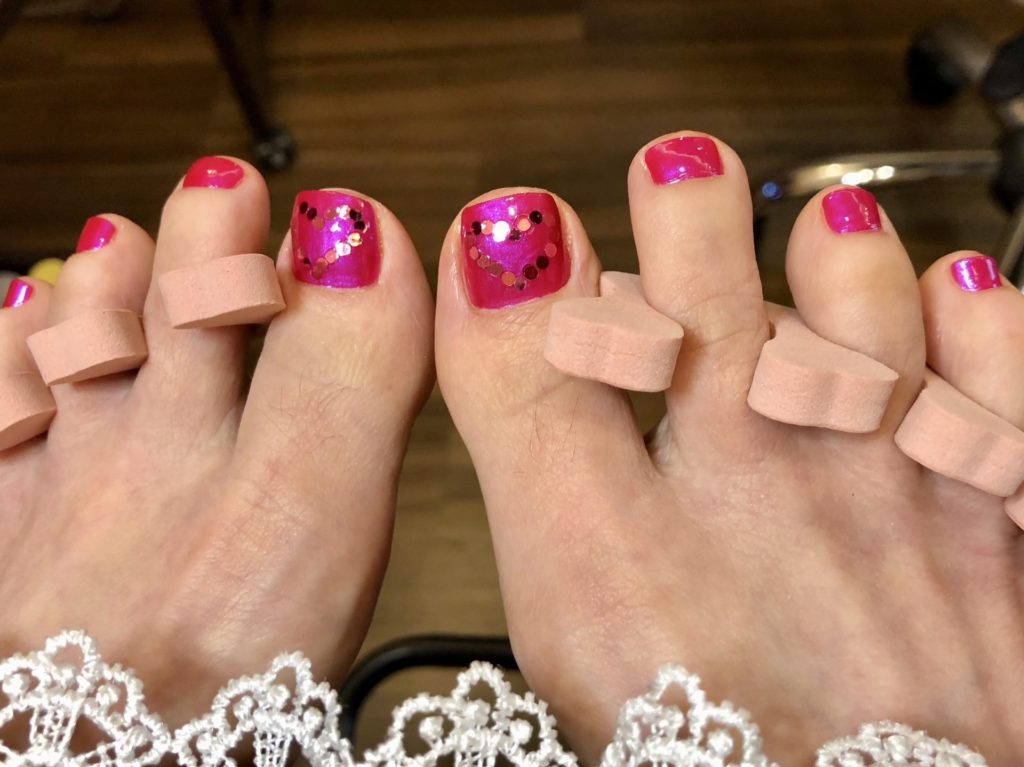 フットのみのお客様です。明るい彩度の高いカラーがとてもお似合いです。ホロを入れて少しだけキラッとさせて。